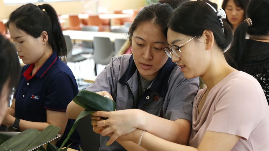 “花花世界,鴛鴦蝴蝶?!卑殡S著悠揚(yáng)婉轉(zhuǎn)的橫笛獨(dú)奏開場(chǎng),精彩的包粽子比賽拉開帷幕。比賽過(guò)程中各組成員分工明確、默契合作,包粽子新手虛心請(qǐng)教,老手耐心示范,從生疏到熟練,全程彰顯“勤學(xué)”與“奮斗”的企業(yè)文化底色。粽葉翻飛間,歡聲笑語(yǔ)不斷,團(tuán)隊(duì)凝聚力悄然升溫。