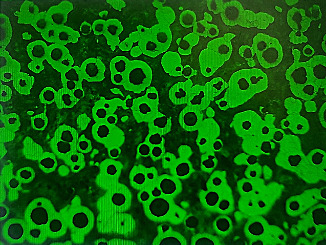 參考GBT 9441-2009判定球化率及石墨形貌,基體以珠光體為主,另有鐵素體;邊緣石墨球數量較多,珠光體比例較低,滲碳體比例小于等于3%,且彌散分布;